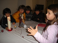 As catequistas do 3º ano convidaram as famílias a participar de uma forma mais direta nesta caminhada. O Círio, que semana a semana ia sendo enriquecido na nossa catequese com os símbolos: batismo, alfa, ómega, cruz, ramos e a luz da chama, acompanhava depois uma família toda a semana. Num dos dias da semana, essa família acolhia as outras crianças e os seus pais que pudessem estar presentes, para uma pequena oração e assim celebrarmos a presença de Jesus nas nossas vidas. Através dos ecos dos pais e das crianças, reconhecemos que foi uma experiência gratificante. Para além da proximidade que criou entre pais, crianças e catequistas, recordou-nos o sentimento de pertença à comunidade e a este “Corpo de Cristo“ que é a Igreja, da qual todos fazemos parte.